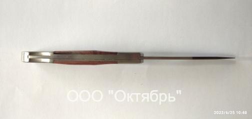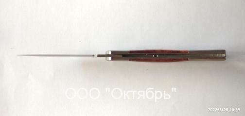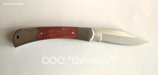 Нож однопредметный с прямым лезвием, рукоятка с ДЕРЕВЯННЫМИ вставками-плашками и ударными притинами.