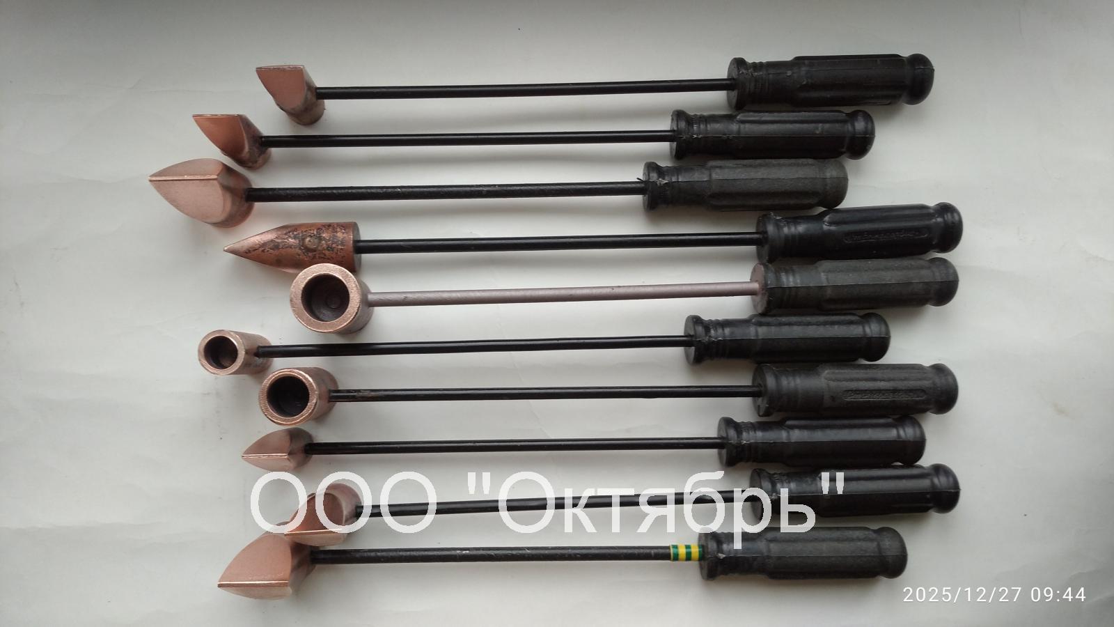 Паяльник медный жаровой ПЛМ-1У-КВ130 состоит из головки, изготовленной из цельной отливки меди в виде колуна с конусным носиком