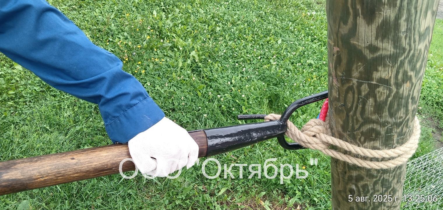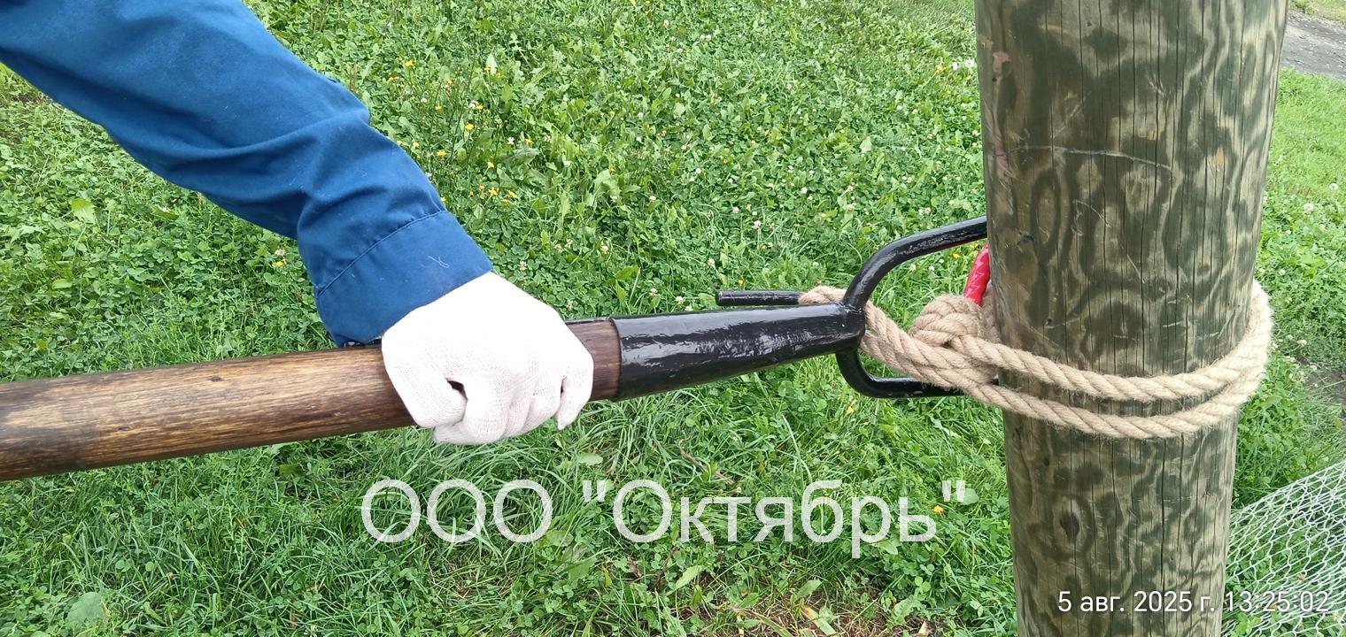 Ключ для разворота круглых опор и перемычек КРО-20-0МО является инструментом готовым к применению. Рабочая часть инструмента металлическая вилка с зацепом крючком, в сборе с деревянным древком рукояткой. Ключ опорный для разворота круглых опор и перемычек предназначен для выполнения работ на строительстве и ремонте электротелекоммуникационных сетей, при установке и монтаже опор воздушных линий электропередач.